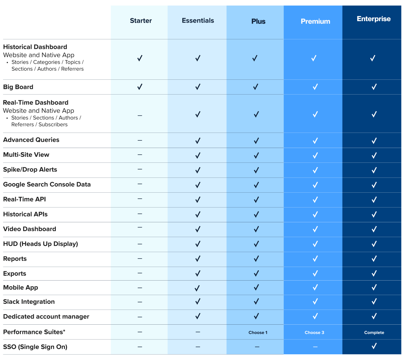 This page shows 2025 Plans and Features. For information on legacy Chartbeat plans, please see Plans, products & features: legacy.